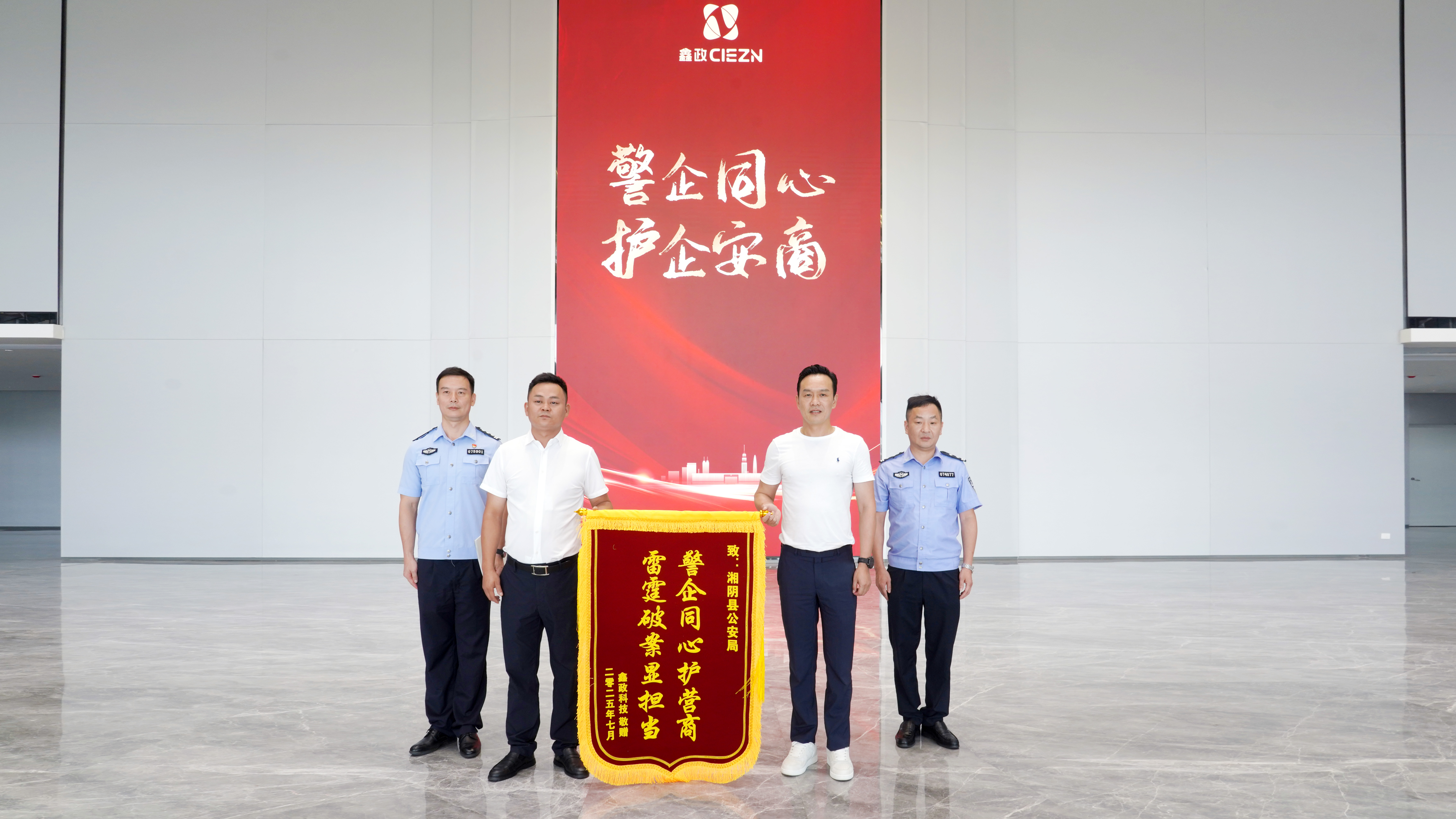 會后,鑫政向湘陰縣公安局贈送錦旗,感謝公安部門在服務(wù)企業(yè)發(fā)展、共筑一流營商環(huán)境中展現(xiàn)的高效務(wù)實作風和擔當作為精神。